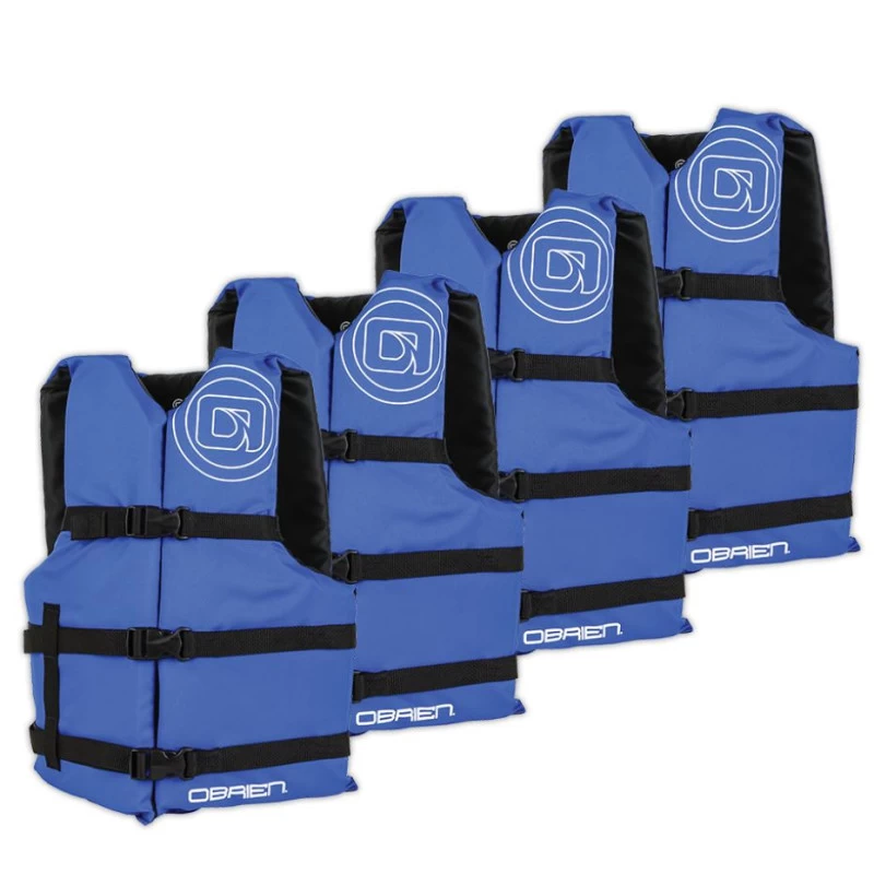 Lot, pack de 4 gilets O’BRIEN pour la pratique des activités nautiques en mer ou plan d’eau fermé : wakeboard, ski-nautique, bouée tractée ou kayak et paddle. Pour adulte, aide à la flottabilité 50 N.