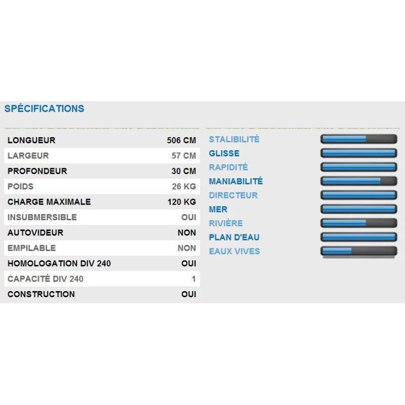 Caractéristiques techniques du kayak de mer monoplace RTM Ysak :